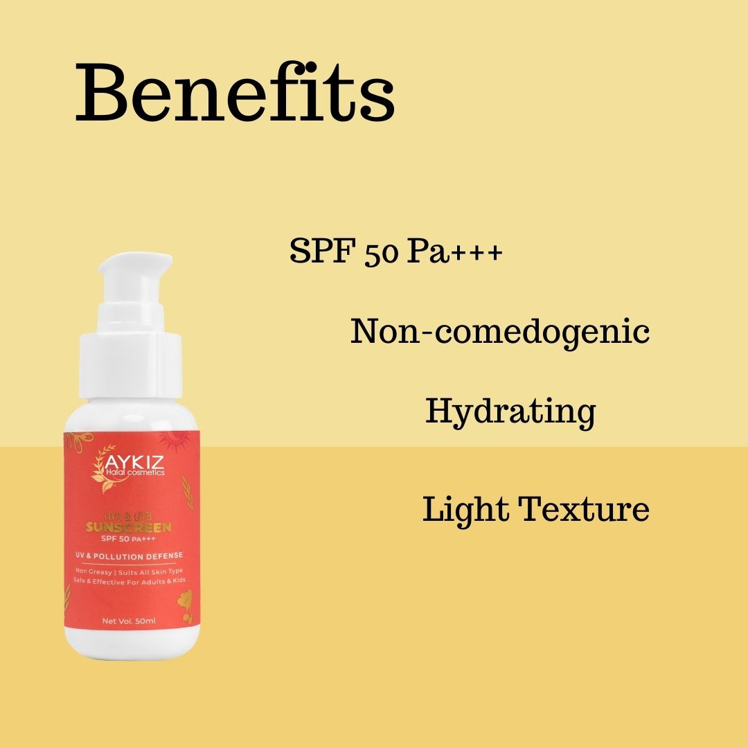 Aykiz spf 50 sunscreen provides broad-spectrum protection to the skin from sun’s UVA and UVB rays as well as blue light of electronic devices. Has a very light texture that spreads easily & disappears leaving behind a natural moistured look.